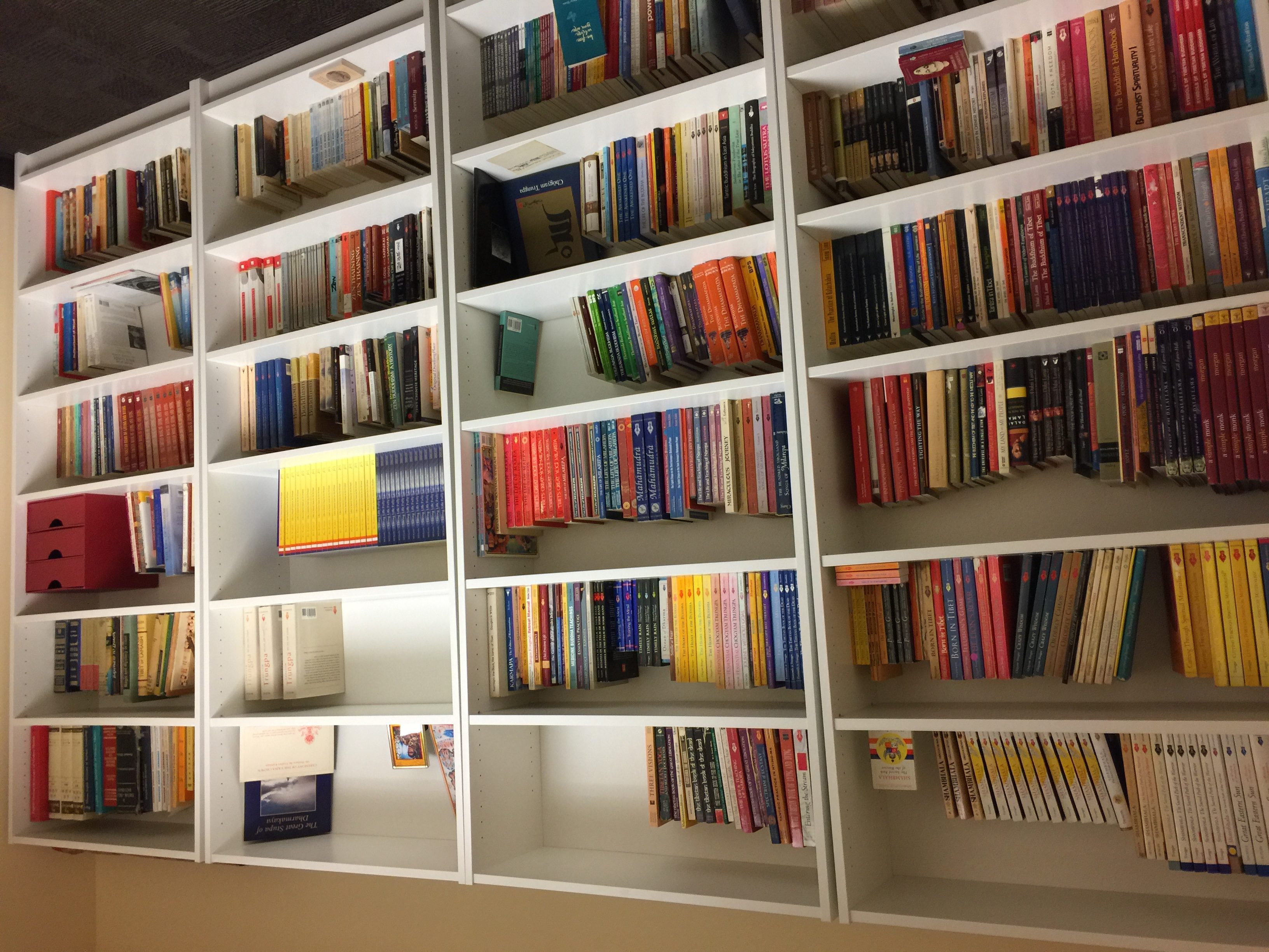 We receive our books (and recordings) by donation and bequest. The volumes are comprised of texts and commentaries of great masters in any language. Well used books are fine so long as the material is in decent shape. We take works belonging to all Buddhist traditions, not only the work of Chogyam Trungpa Rinpoche himself although his writings are prized, especially Seminary and other transcripts. We do accept restricted materials, and where we have nowhere to place them, we will return them to their home lineages for their internal use.